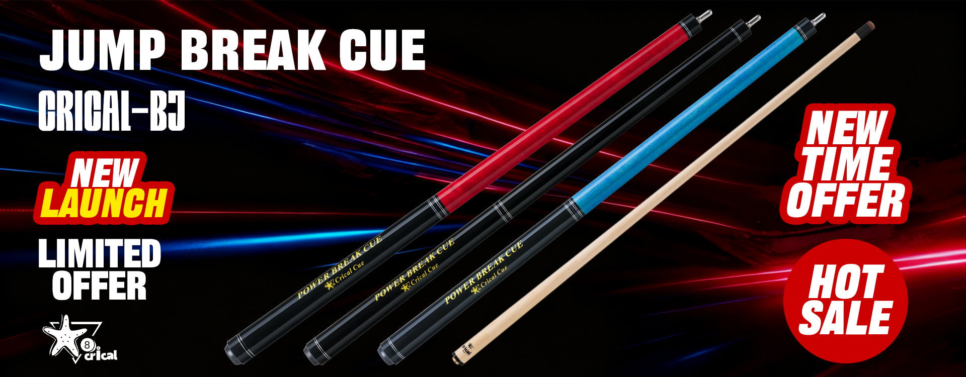 【Crical】2 in 1 Carbon Energy Break Punch Kick-off Jump Billiard Pool Cue Stick 13mm Break Jump Cue Stick
