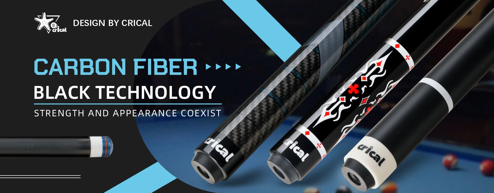 【Crical】CL-01 Carbon Fiber Pool Cue Stick with 12.5mm Tip Low Deflection shaft for Billiard Cue Sticks