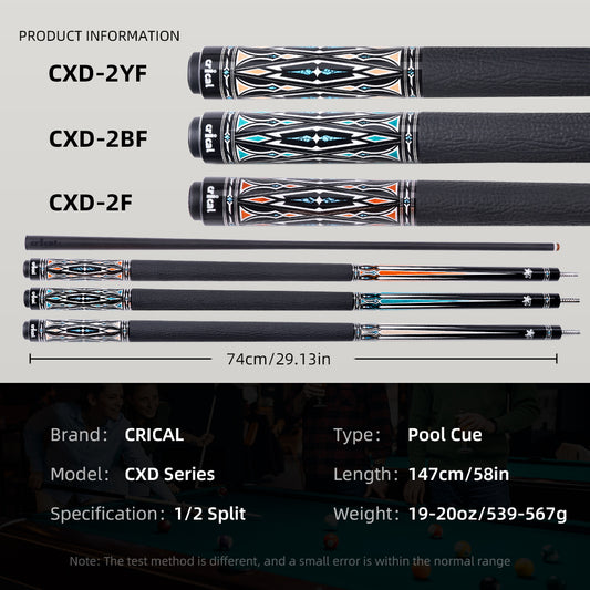 【CRICAL】CXD-1BF Carbon Fiber Pool Cue Stick with 12.5mm Tip Low Deflection shaft for Billiard Cue Sticks