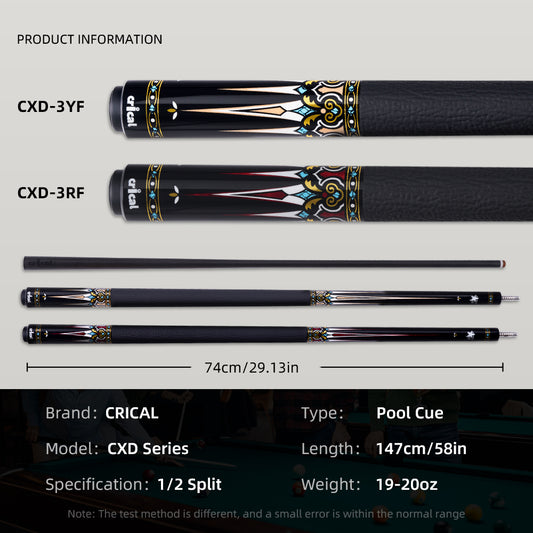 【Crical】CXD-1YF Carbon Fiber Pool Cue Stick with 12.5mm Tip Low Deflection shaft for Billiard Cue Sticks
