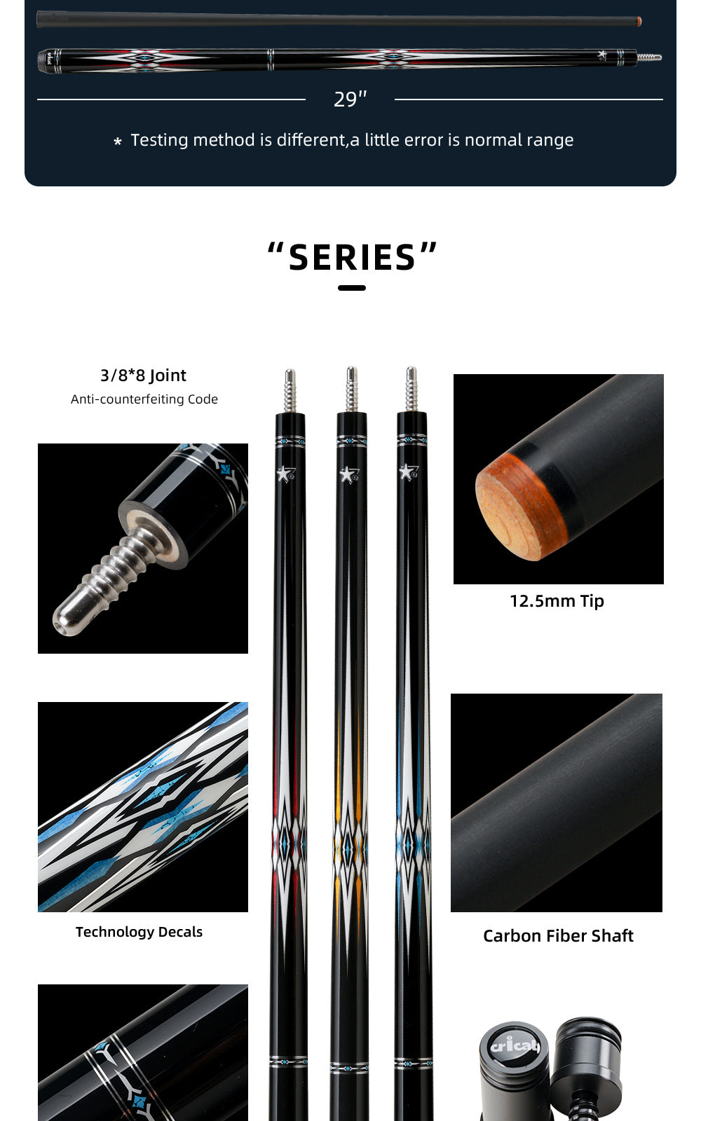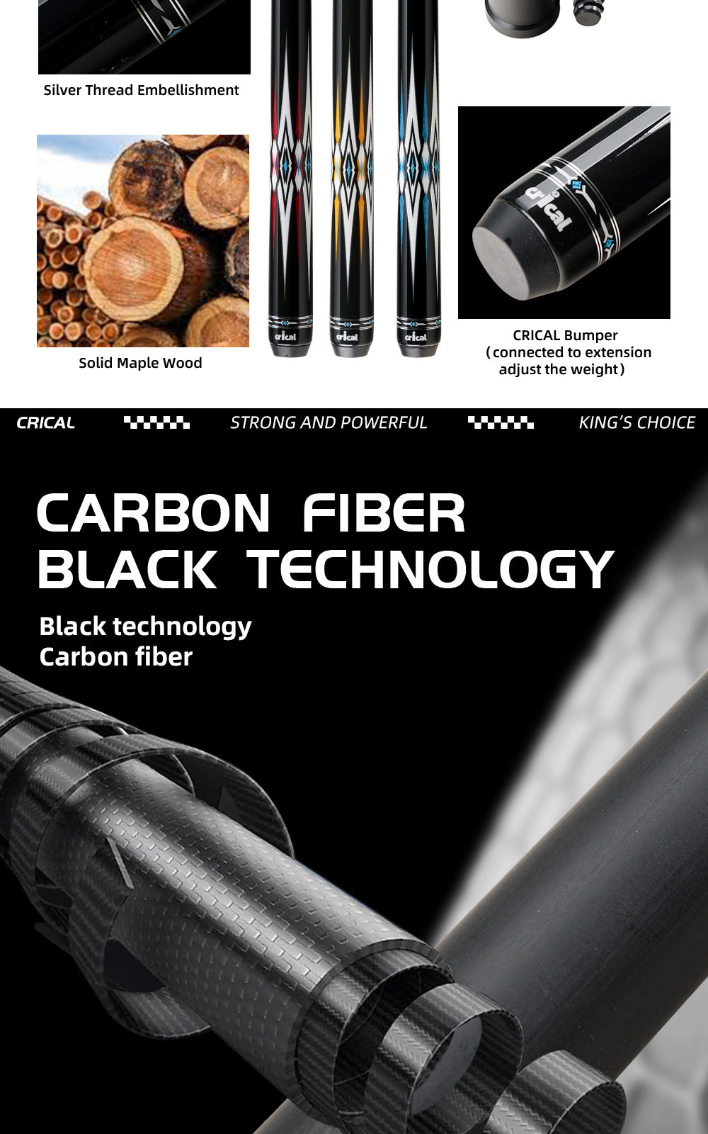 CRICAL Leader Carbon Fiber Pool Cue 12.5mm Tip 3/8 * 8 Radial Joint Carbon Cue Fiber Billiard Stick