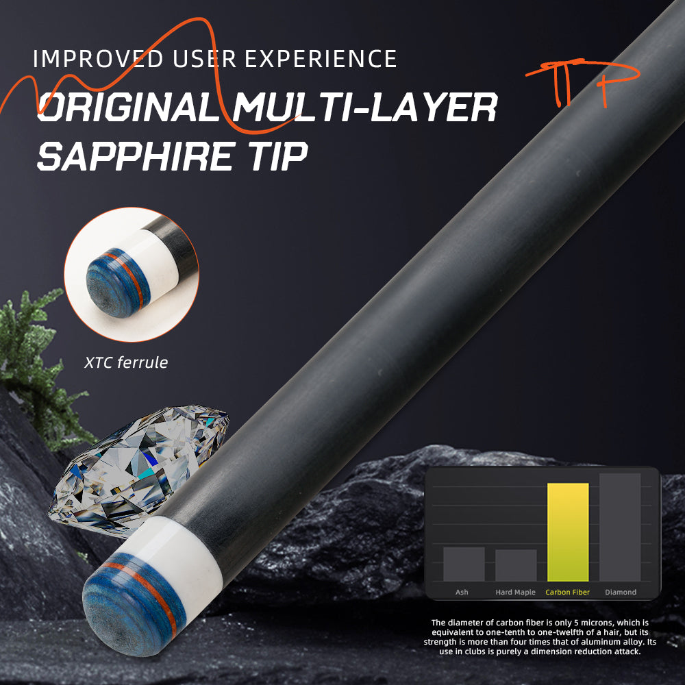 - [Low Deflection Cue Carbon Fiber Shaft]This carbon fiber shaft is filled with a customized foam inside which allows for less deflection on shots with a lot of spin, and it performs consistently and accurately,it is suitable for most professional players,Twice As Hard as a Normal Wooden Cue Shaft, Duraw and Indeformable.