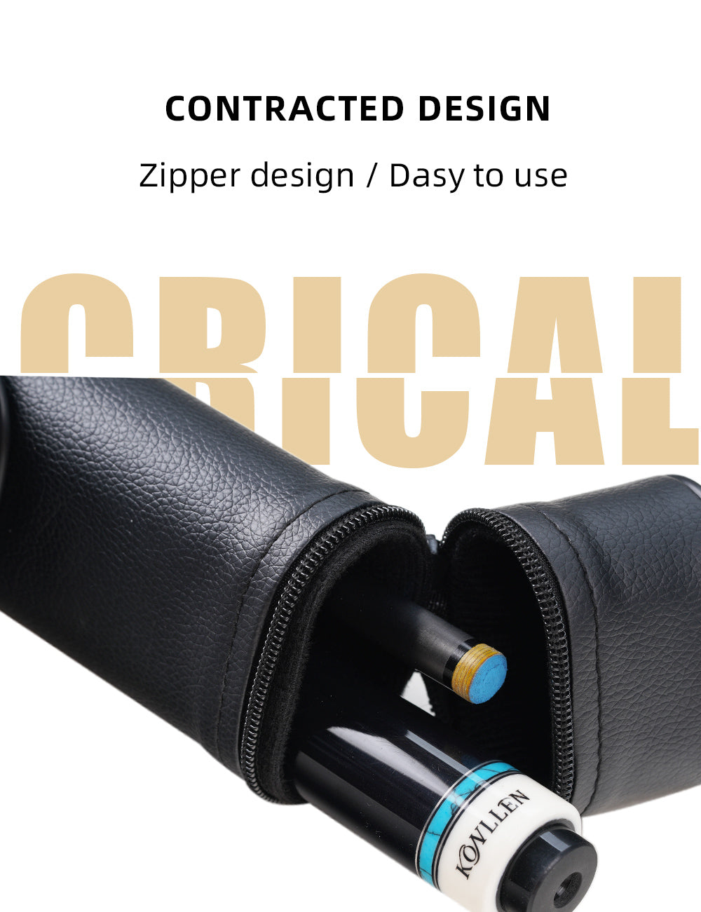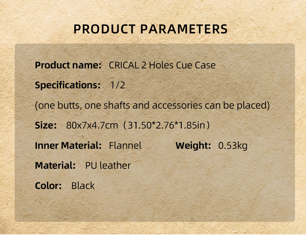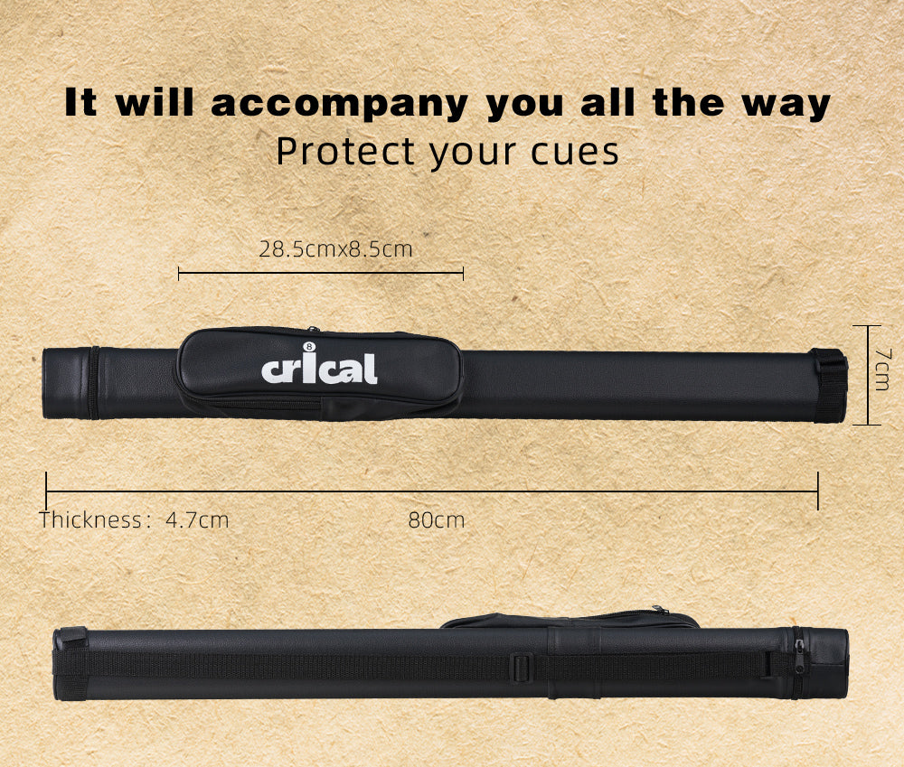 Premium Protection Cue Case: Providing superior protection for your pool cues, the CRICAL hardshell cue case is made of premium synthetic leather, which is waterproof and scratch-resistant. The soft lining and compartment design inside can effectively reduce the wear between the cues.
