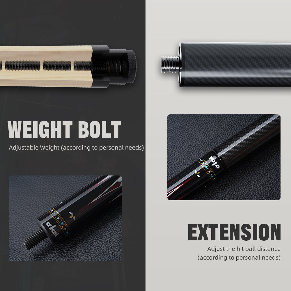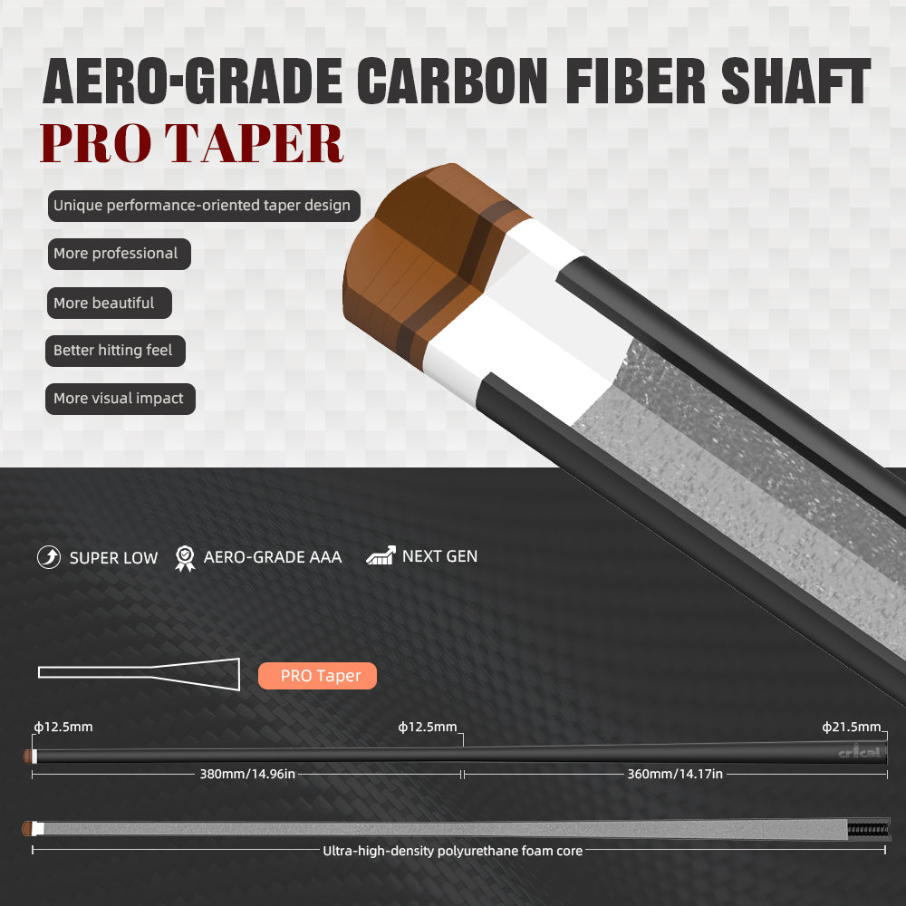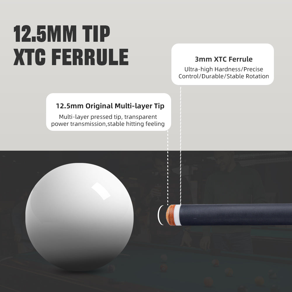 - Professional 12.5mm Tip: The carbon fiber cue features a multi-layer pigskin tip imported from Japan, rich in elastic fibers and boasting strong ball-grabbing power. Crafted for precision and control, A hard center paired with softer edges, the tip is durable and infinitely playable.