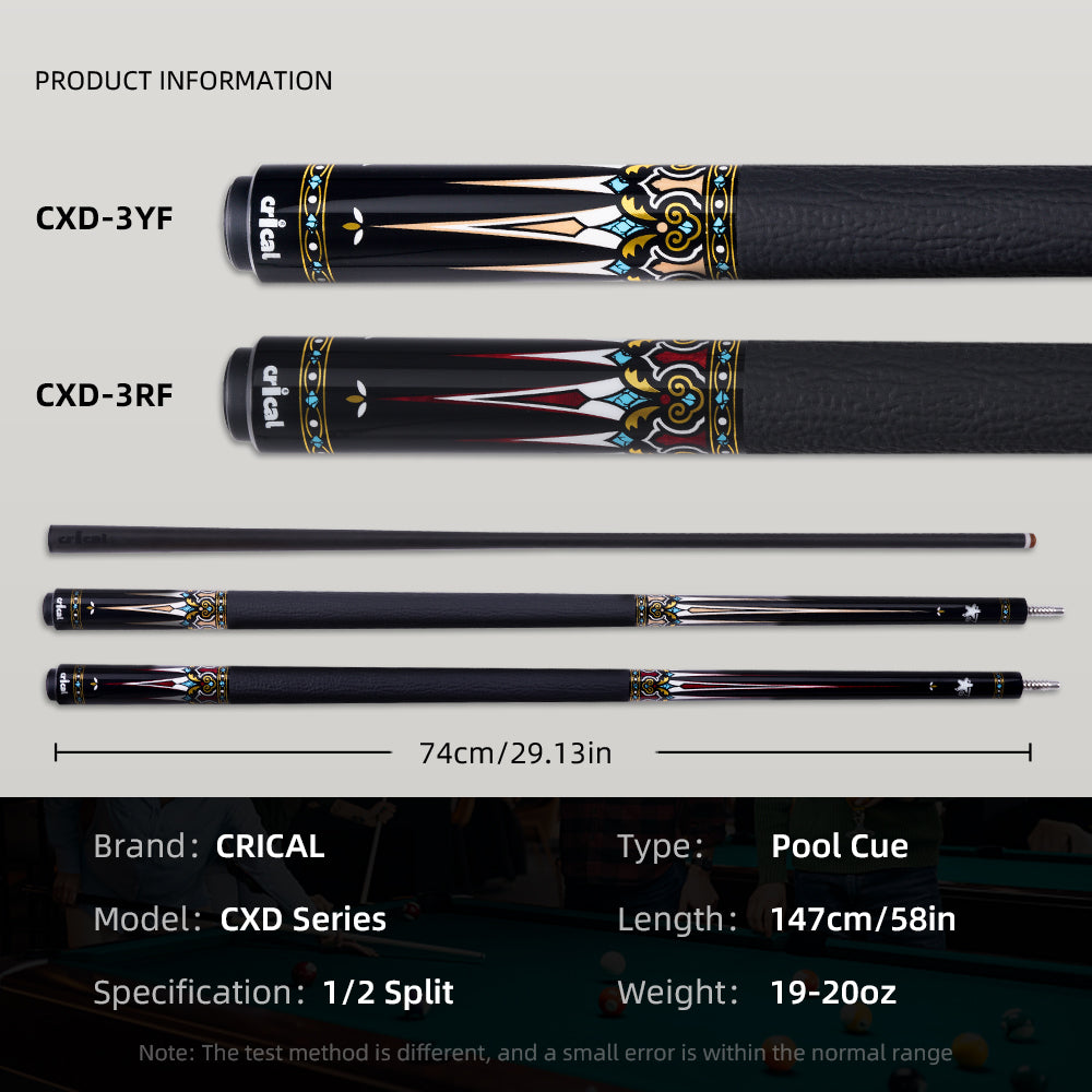 【Crical】CXD-3RF Carbon Fiber Pool Cue Stick with 12.5mm Tip leather grip Low Deflection shaft for Billiard Cue Sticks