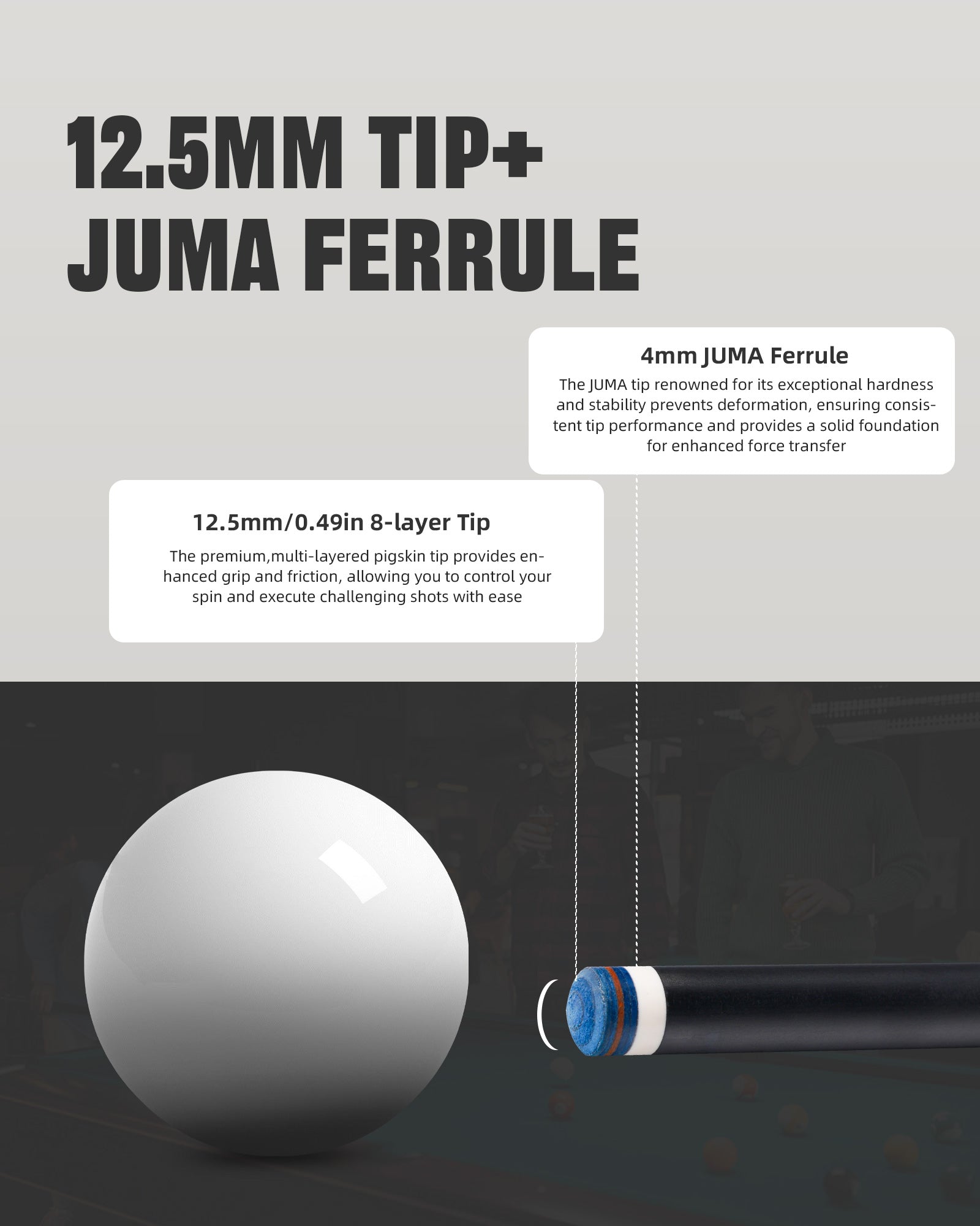 - Reinforced Carbon Fiber Construction Shaft: Built with a robust carbon fiber cue shaft, this cue stick enhances torsional stability and delivers solid feedback on every shot. The carbon fiber pool stick ensures long-lasting performance that meets professional standards