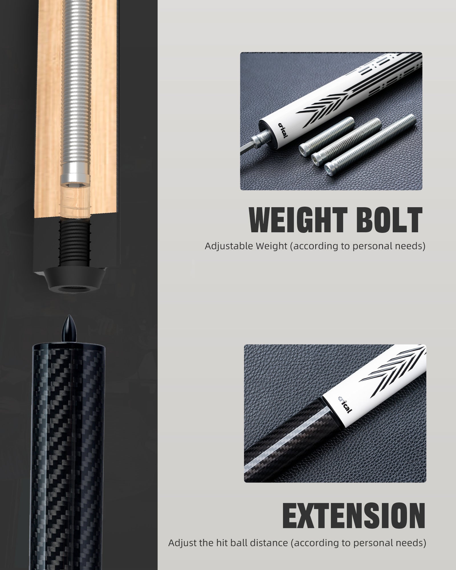 - Premium Imported Beech & Customizable Balance: Crafted from imported beech wood, this carbon fiber cue stick for adults features a weight bolt system for personalized balance and a stainless steel joint. This pool cue carbon fiber design offers tailored performance, making it a top choice among serious players